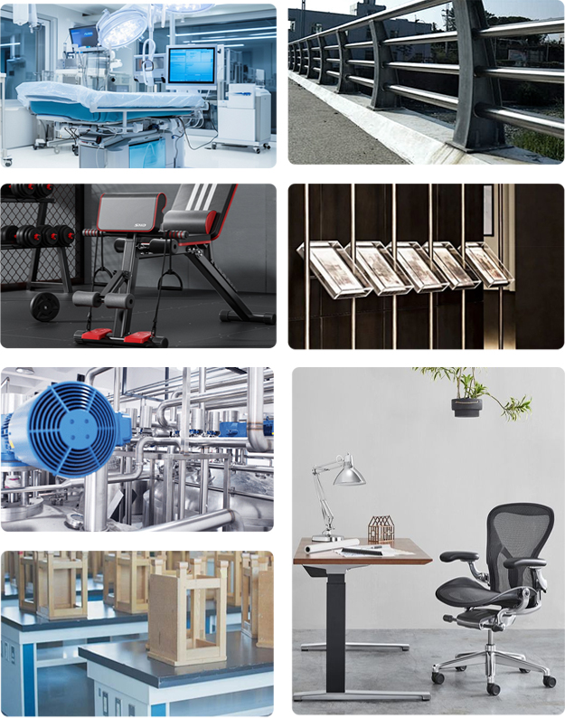 醫(yī)療器械、護(hù)欄行業(yè)、管道行業(yè)、健身器材、商業(yè)展柜、辦公家具、教學(xué)教具