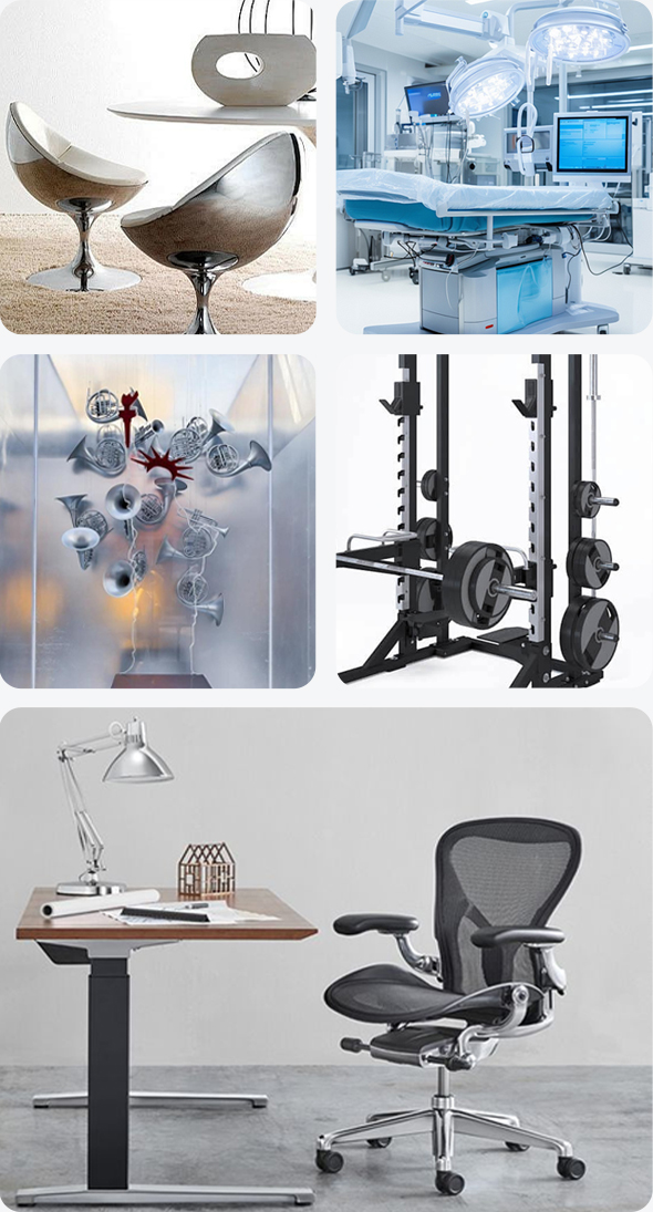 醫(yī)療機械、管道行業(yè)、護欄行業(yè)、辦公桌椅、健身器材