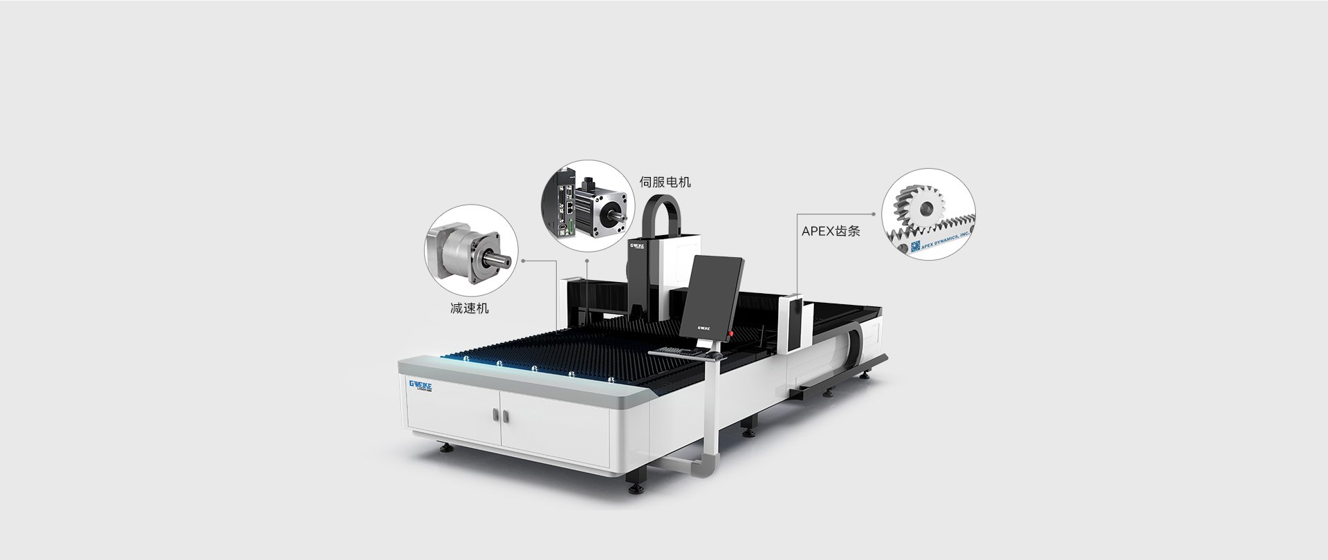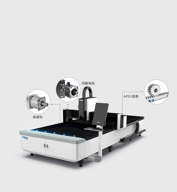 伺服電機、減速機、齒條等均采用大品牌,品質高、機床作業精度高、使用壽命有保障