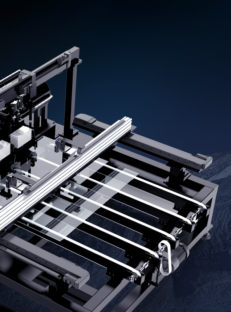 可以根據(jù)客戶場地需求任意改變上下料方式, 可以對接玻璃上片機、單機加工
