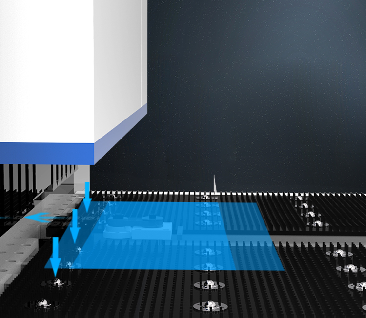 最快可達到0.2秒/刀, 較傳統折彎機提升 260% 每日折彎刀數5000+, 相當于6臺傳統折彎機